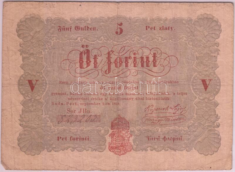 https://www.darabanth.com/en/203-Online-auction/203.0/Numismatics/Hungarian-Banknotes~8/1848-5Ft-Kossuth-banko-barna-TIII-3Cbr3EAdamo-G109~II806076