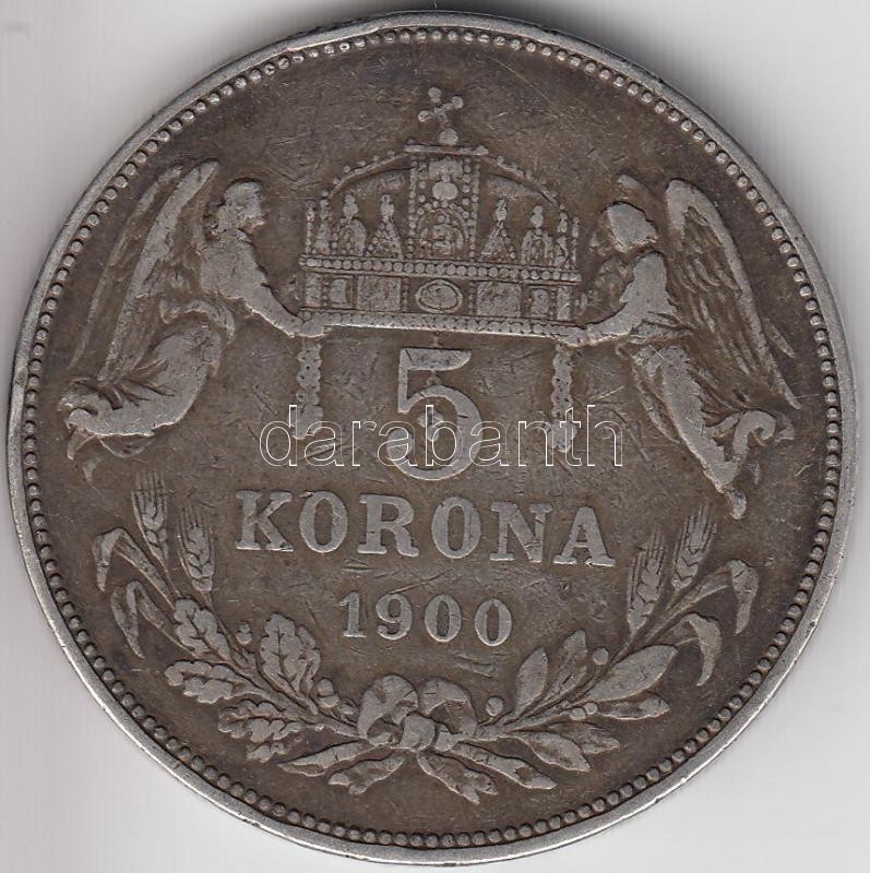 https://www.darabanth.com/en/203-Online-auction/203.0/Numismatics/Hungarian-metal-and-silver-coins~9/1900-5K-Ag-Ferenc-Jozsef-T3~II809998