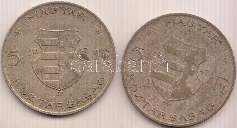 https://www.darabanth.com/en/203-Online-auction/203.0/Numismatics/Hungarian-metal-and-silver-coins~9/1947-5Ft-Ag-Kossuth-2x-T3~II811738