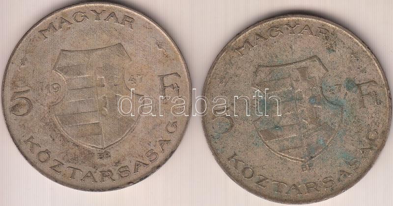 1947. 5Ft Ag "Kossuth" (2x) T:3