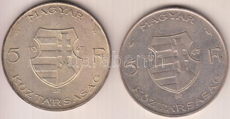 https://www.darabanth.com/en/203-Online-auction/203.0/Numismatics/Hungarian-metal-and-silver-coins~9/1947-5Ft-Ag-Kossuth-2x-T3~II811746