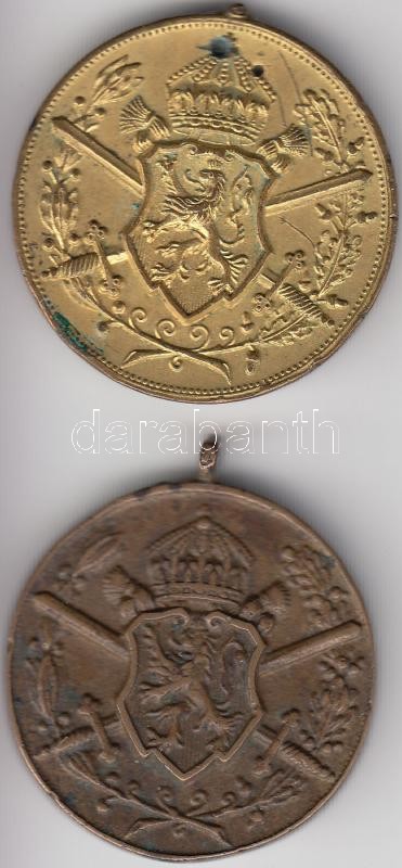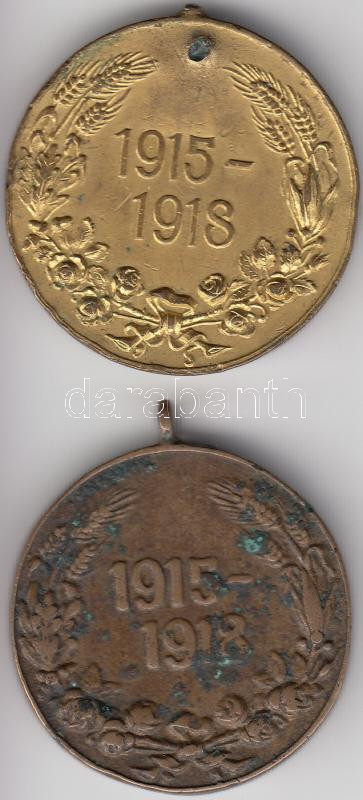 Description: 1938. Bolgár Háborús emlékmedál "1915-1918" Br és aranyozott Br kitüntetés mellszalag nélkül (2x), egyiken a függesztőkarika letört + ütésnyom T:2-,3