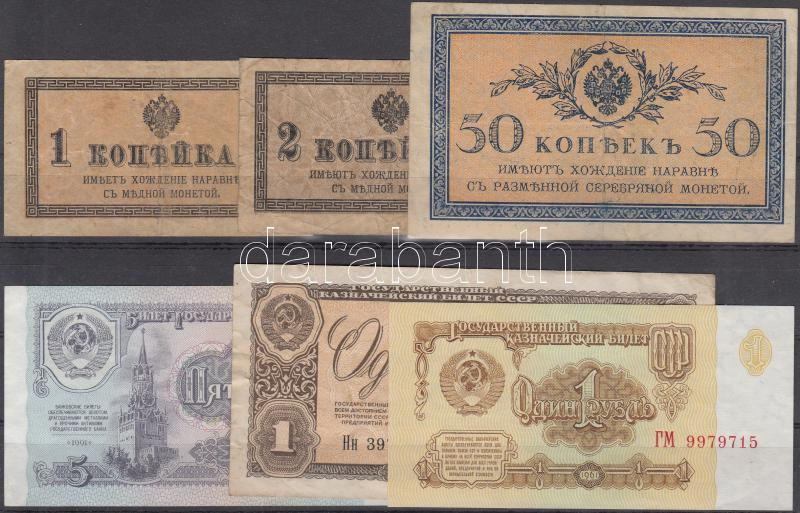 Orosz-Szovjet 1915-1991. 1K-5R (6xklf) bankjegy tétel T:vegyes