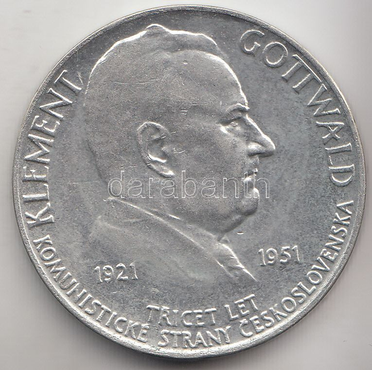 https://www.darabanth.com/en/203-Online-auction/203.0/Numismatics/Worldwide-coins~13/Csehszlovakia-1951-100K-Ag-Klement-Gottwald-T2-3Cbr3ECzechoslovakia-1951-100-Korun-Ag-Klement-~II794753