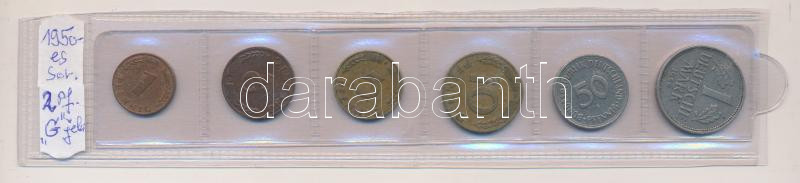 GFR 1950. 1 Pfennig - 10 Mark (6xdiff) serie, with 1950G 2 Pfennig C:XF