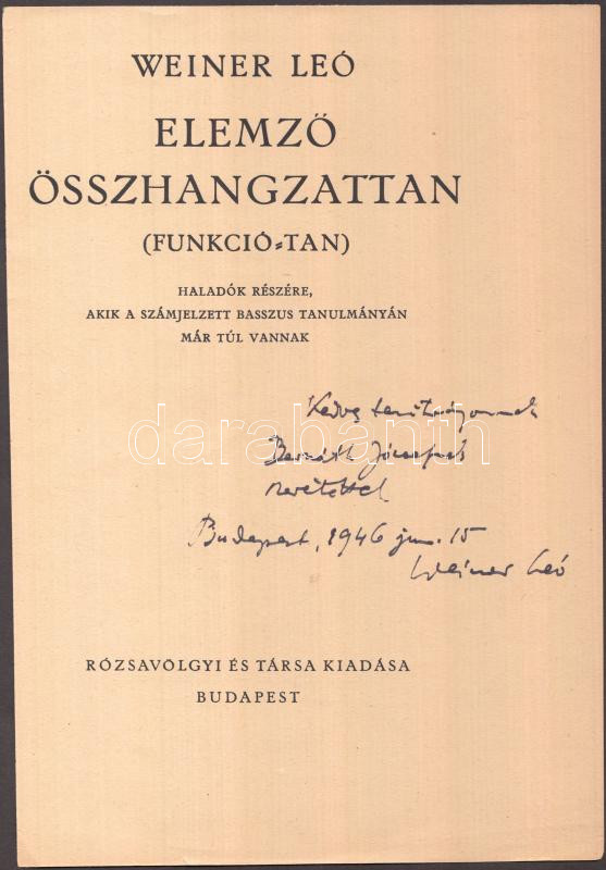1946 Weiner Leó (1885-1960) zeneszerző könyvének aláírt címlapja