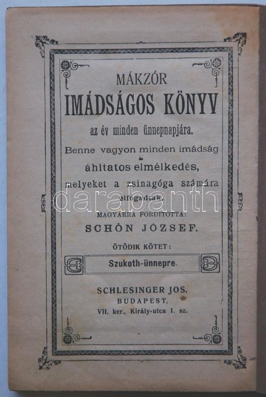 Mákzór Imádságos könyv az év minden ünnepnapjára. 5. kötet. Szukoth ün... https://www.darabanth.com/en/203-Online-auction/203.0/Other-collectibles/Books-Judaica~200028/Makzor-Imadsagos-konyv-az-ev-minden-unnepnapjara-5-kotet-Szukoth-unnepre-Schlesinger-J~II510261