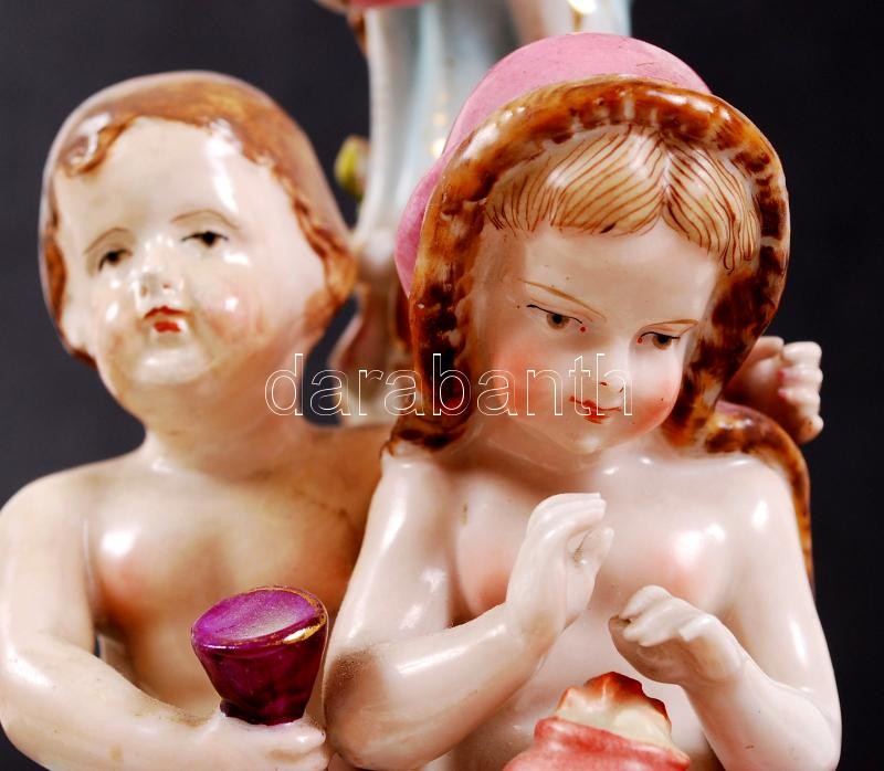 Antik német jelzett figurás gyertyatartó, kézzel festett, sérült, m:28...