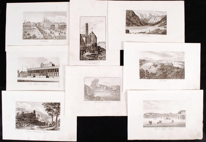 cca 1800 10 db NÉmetországi városképes rézmetszet (München, Stuttgart, Bréma), / Germany etchings 14x9 cm