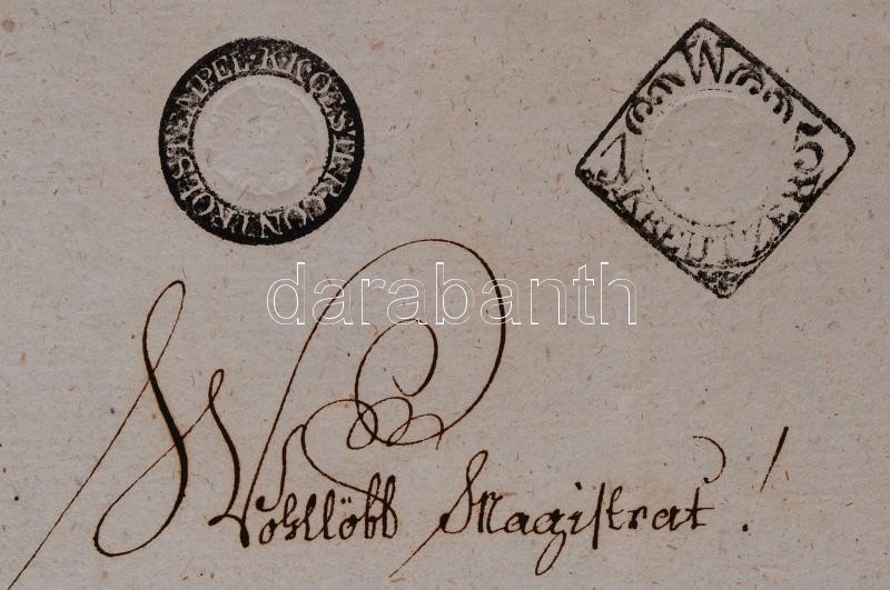 1816 Győr, Hivatalos levél Győr szabad királyi város tanácsához 15 krajcáros, valamint kontrollszignettával vízjeles papírra.