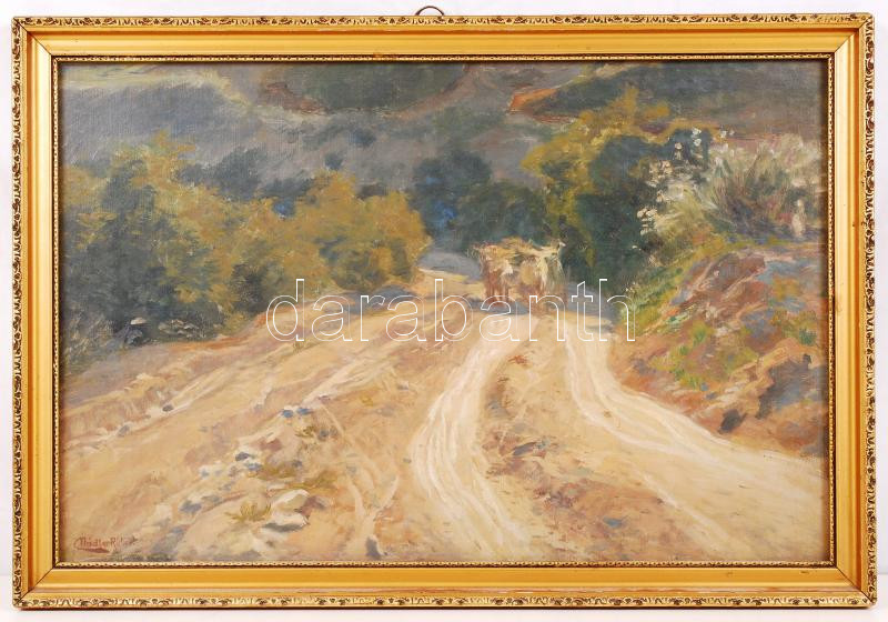 Nádler Róbert (1858-1938): Ökrös szekér. Olaj, karton, jelzett, üvegez...