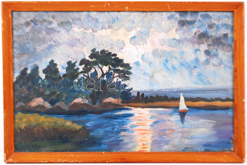 Toth jelzéssel: Vitorlás a partnál. Olaj, karton, üvegezett kertben 29...