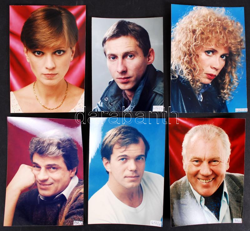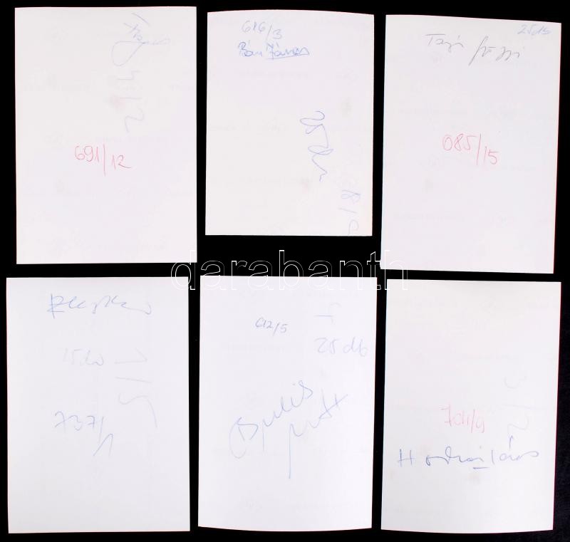 cca 1975-1985 Színművészek portré tétele, aláírásukkal hitelesítve (Bán János, Bubik István, Frajt Edit, Horkai János, Sztankay István, Tarján Györgyi), a FŐFOTÓ színész archívumából, 6 db fotó, 9x12 és 10x14 cm-es méretben