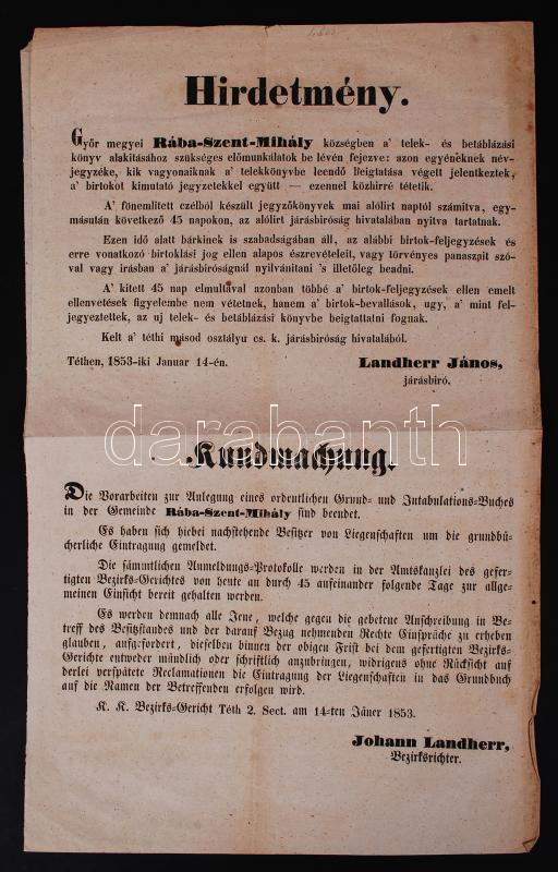 https://www.darabanth.com/en/203-Online-auction/203.0/Other-collectibles/Printed-Materials~200041/1853-Rabaszentmihaly-teleknyilvantartasi-dokumentuma-nevekkel-hazszamokkal~II760994