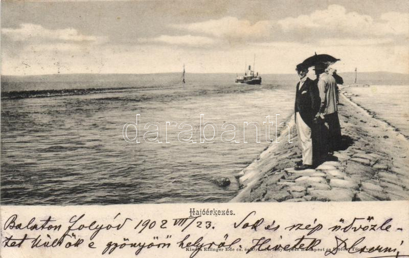 Balaton, Hajóérkezés; kiadja Ellinger Ede (EB)