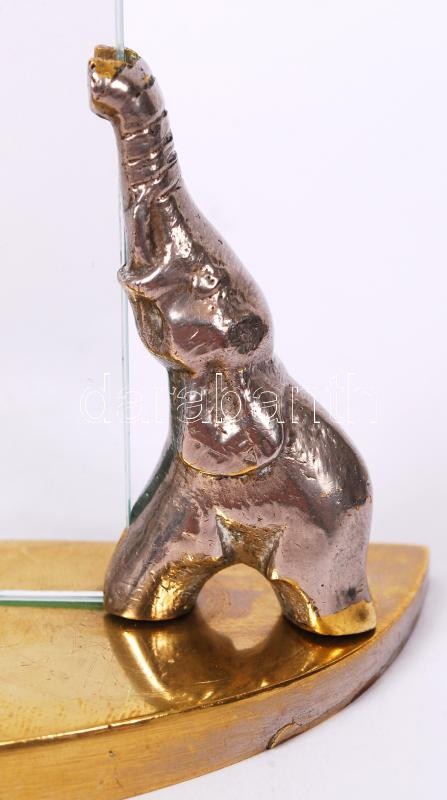 cca 1940 Elefánt díszítésű, réz, üveg asztali fényképtartó / Photo holder 10x16 cm