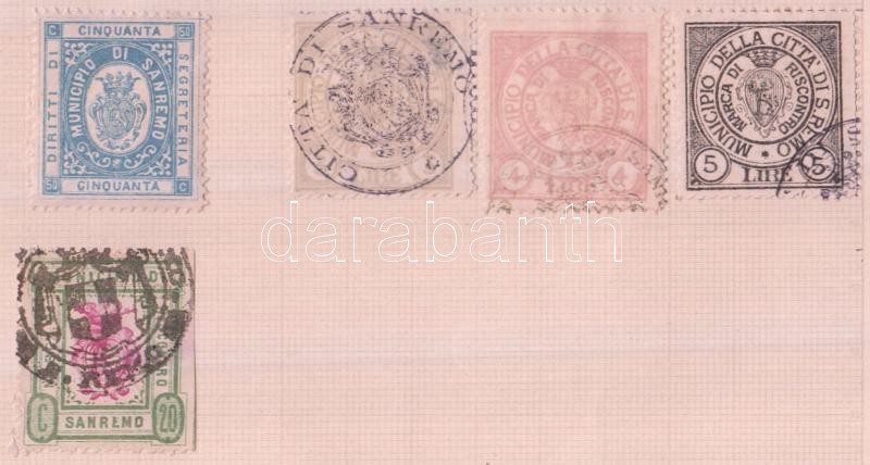 35 db olasz okmánybélyeg 9 lapra ragasztva