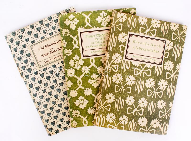 Description: Rilke, Rainer Maria: Die Weise von Liebe und Tod des Cornets Christoph Rilke; Das Marien-Leben. Leipzig, Insel-Verlag; Huch, Ricarda: Liebesgedichte. Leipzig, Insel-Verlag; Kiadói kartonált kötés, jó állapotban.