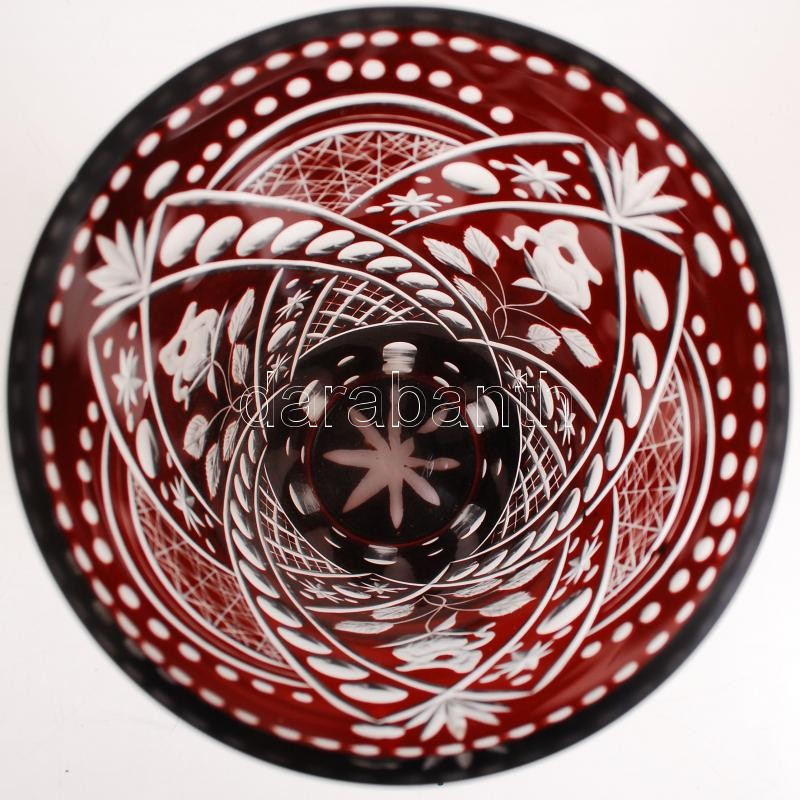 Többrétegű rubinvörös váza, csiszolt, metszett, hámozott, apró hibákka...