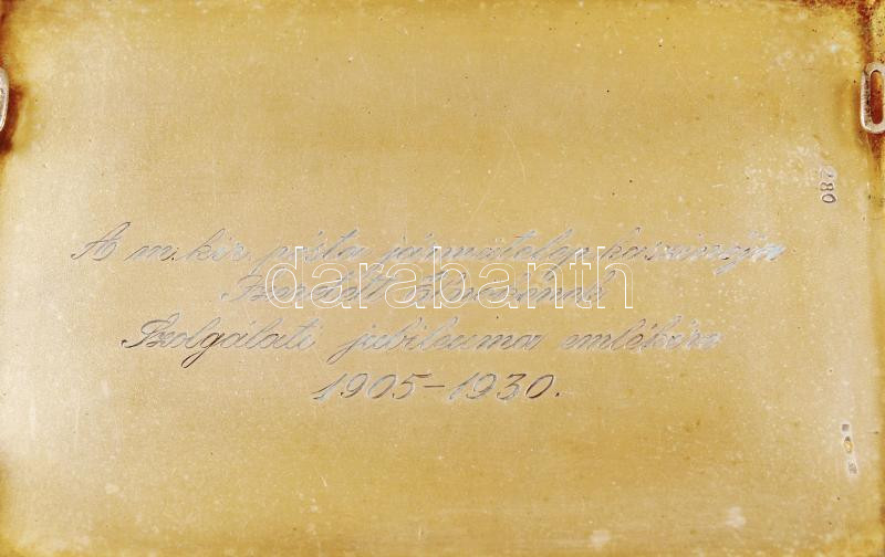 Ezüst (Ag.) cigaretta tálca, jelzett, mesterjeggyel, aranyozott monogr...
