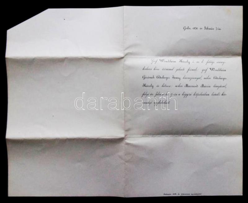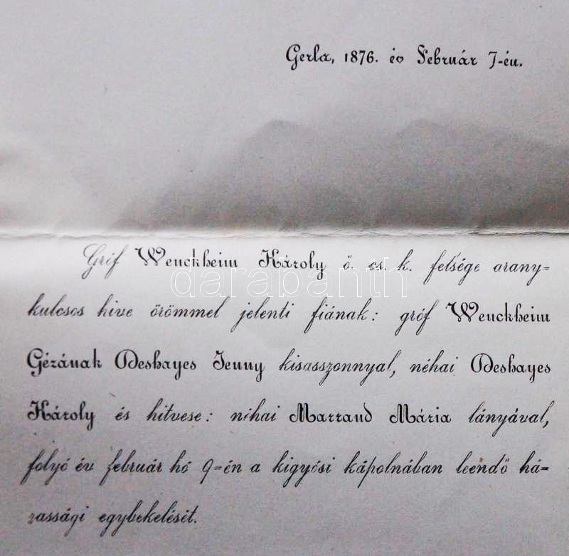 1876 Weuckheim Géza (1847-1924) Gerlai lótenyészet atya és felesége Deshayes Jenny esküvői meghívója