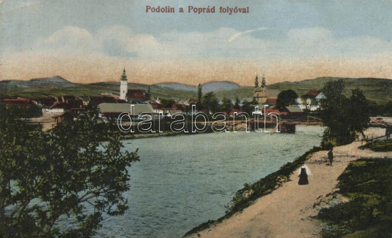 Podolin, Poprád folyó, Szankovszky Miksa kiadása / Poprád river, churc...