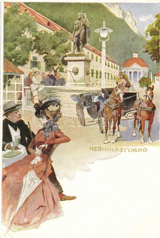 Herkulesfürdő, artist signed postcard Schön & Maison, München (cut)