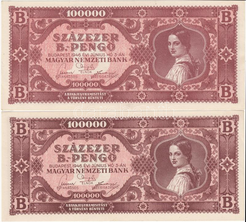 https://www.darabanth.com/en/205-Online-auction/205.0/Numismatics/Hungarian-Banknotes~20007/1946-100000BP-2x-eltero-szinvaltozat-TI-~II822370