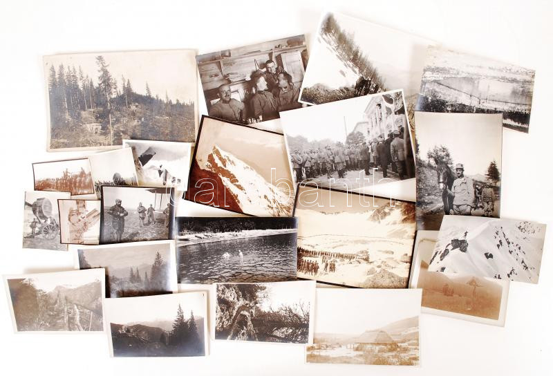 1914-1918 Katonai fényképek az I. világháborúból, egy tehetségesen fényképező katona hagyatékából, 21 db fotó, 9x13 cm és 5x4 cm közötti méretekben