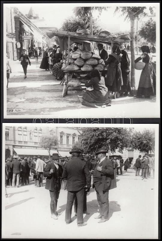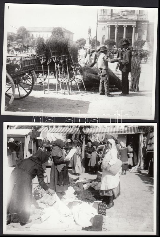 1916 A ceglédi piac a nagytemplom körül, eredeti negatívokról készült későbbi másolatok, feliratozva, 4 db fotó, 13x18 cm