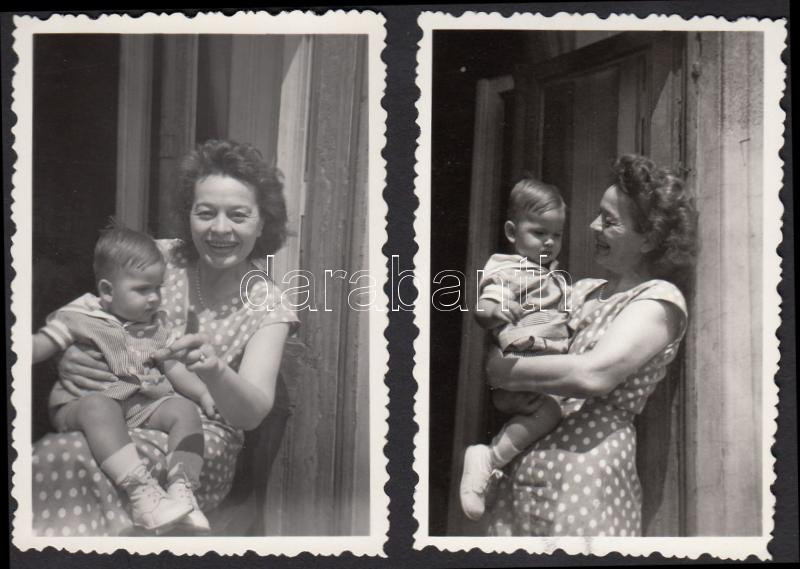 cca 1950 Sulyok Mária színész nő kisgyermekkel, 2 db fotó, 6x9 cm