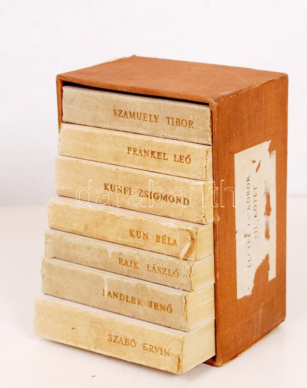 Életek és korok I-VII. Minikönyv sorozat kiadói tékában: Frankel Leó, Kun Béla, Kunfi Zsigmond, Landler Jenő, Rajk László, Szabó Ervin, Szamuely Tibor. Bp., 1974, Akadémiai kiadó. Kiadói papírkötés, erősen kopottas állapotban.