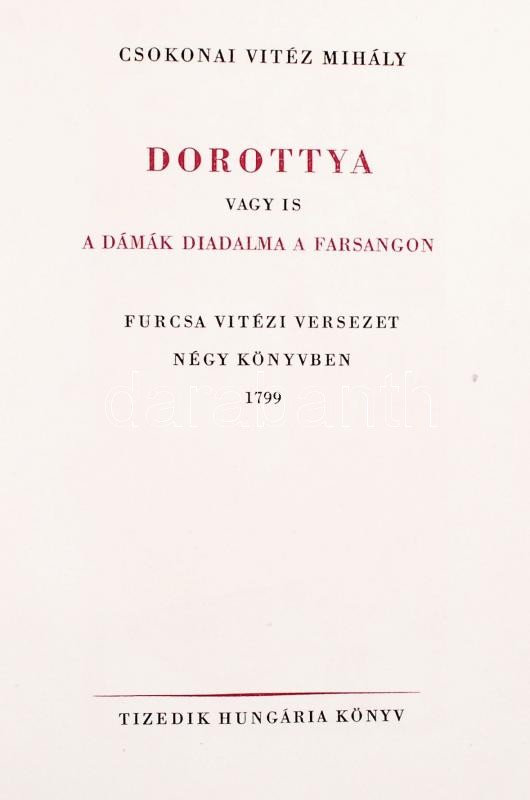 Csokonai Vitéz Mihály: Dorottya vagyis a dámák diadalma a farsangon, F... https://www.darabanth.com/en/206-Online-auction/206.0/Other-collectibles/Books-Other-rarities~10037/Csokonai-Vitez-Mihaly-Dorottya-vagyis-a-damak-diadalma-a-farsangon-Furcsa-vitezi-versezet-ne~II834734