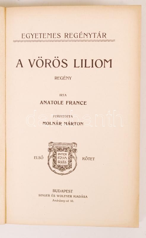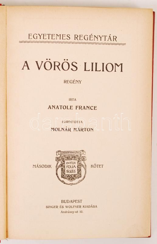 Egyetemes regénytár 6 kötet a sorozatból . Bp., 1890. Singer és Wolfner. Gottermayer egészvászon kötésben