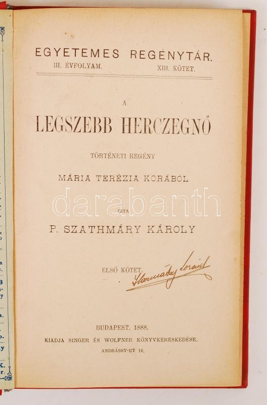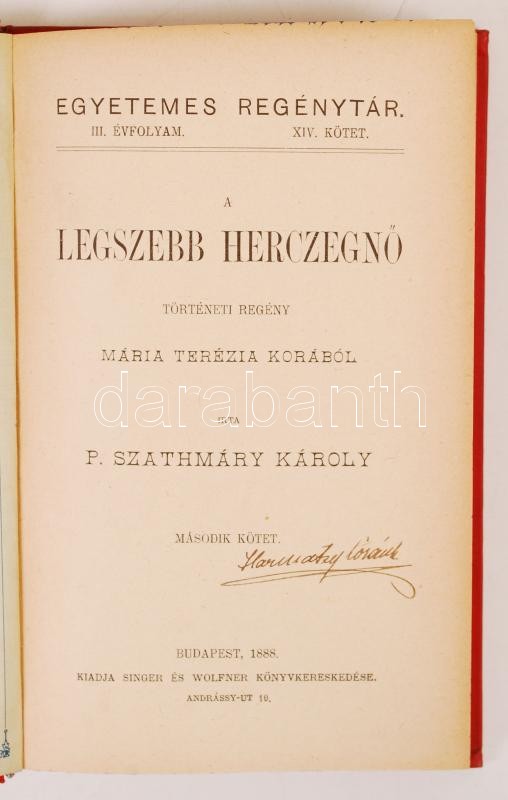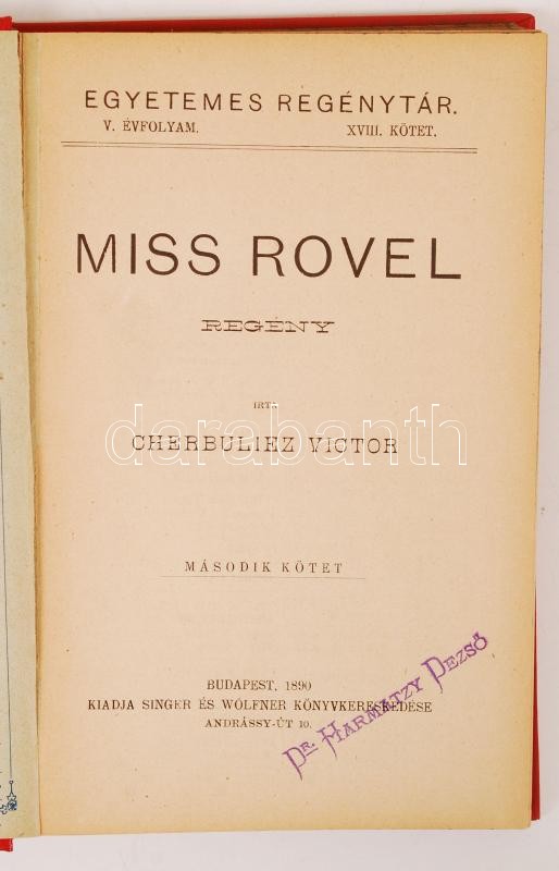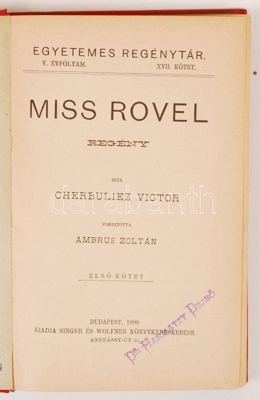 Egyetemes regénytár 6 kötet a sorozatból . Bp., 1890. Singer és Wolfne...