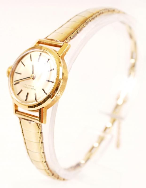 Arany (18K) tokos IWC női karóra, fém szíjjal, jelzett, tok szám:2145130, működik, bruttó:15,9 g