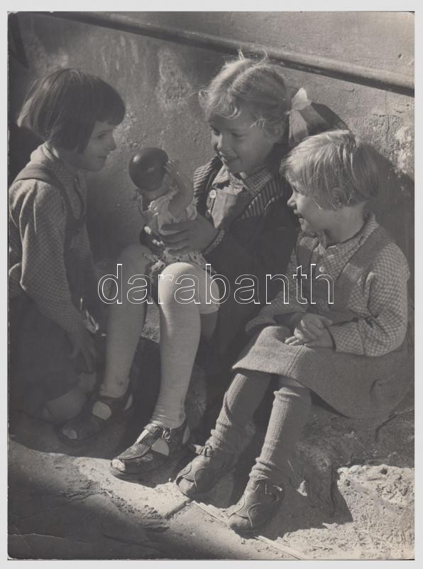 cca 1950 Balogh Gyula: A baba, vintage fotó, aláírva, feliratozva, 24x18 cm