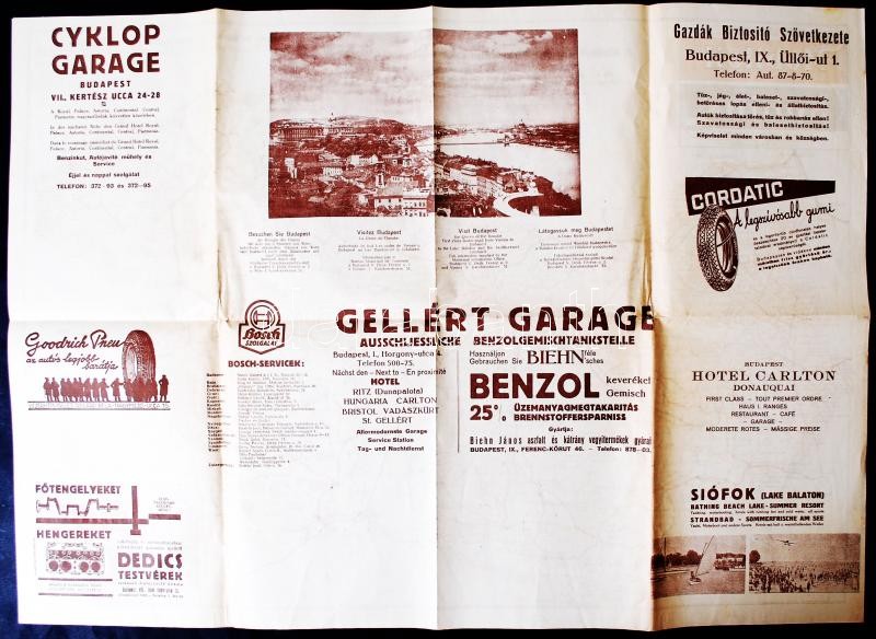 cca 1932 Mobiloil Magyarország autóstérkép a benzinkutakkal és hátoldalt hirdetésekkel, szép állapotban