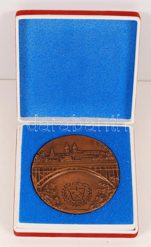 R. Kiss Lenke (1926-2000): Veszprém, 25 éves tagságért OMBKE. Bronz plakett, eredeti tokjában, jelzett, d:8 cm