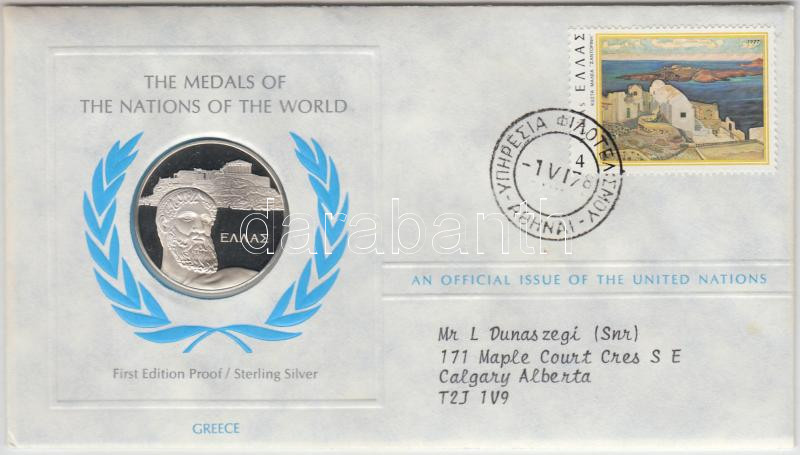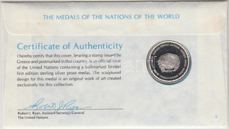 Description: ENSZ 1978. "A Világ nemzeteinek emlékérmei - Görögország" Ag emlékérem (15g/0.925/32mm) megcímzett érmés borítékon elsőnapi bélyegzős bélyeggel, hátoldali tanúsítvánnyal, ismertetőkkel T:PP