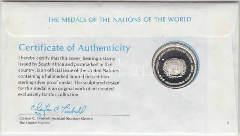 ENSZ 1979. "A Világ nemzeteinek emlékérmei - Dél-afrikai Köztársaság" Ag emlékérem (15g/0.925/32mm) megcÃmzett érmés borÃtékon elsÅ‘napi bélyegzÅ‘s bélyeggel, hátoldali tanúsÃtvánnyal, ismertetÅ‘kkel T:PP