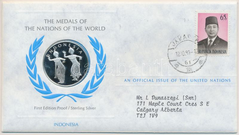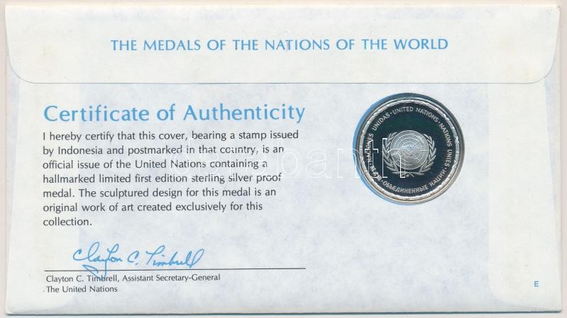 Description: ENSZ 1981. "A Világ nemzeteinek emlékérmei - Indonézia" Ag emlékérem (15g/0.925/32mm) megcímzett érmés borítékon elsőnapi bélyegzős bélyeggel, hátoldali tanúsítvánnyal, ismertetőkkel T:PP