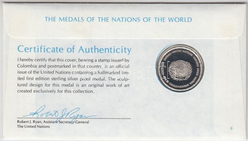 United Nations 1981. "The Medals of the Nations of the World - Colombia" Ag medallion (15g/0.925/32mm) coin letter with first day of issue stamp and certificate C:PP