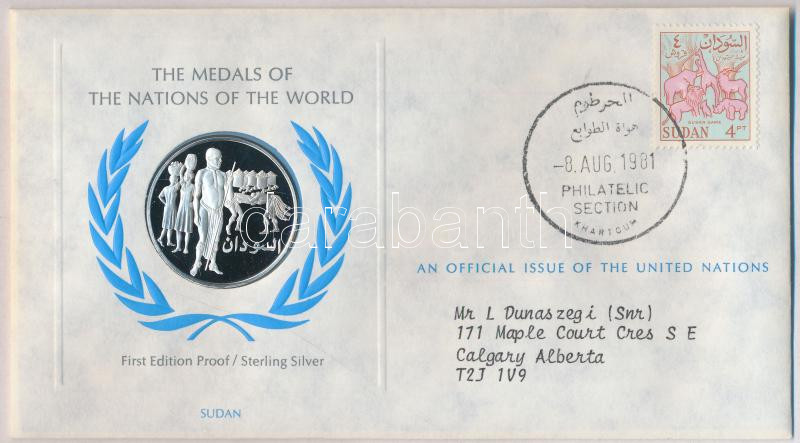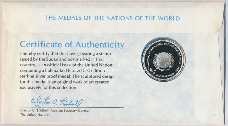Description: ENSZ 1981. "A Világ nemzeteinek emlékérmei - Szudán" Ag emlékérem (15g/0.925/32mm) megcímzett érmés borítékon elsőnapi bélyegzős bélyeggel, hátoldali tanúsítvánnyal, ismertetőkkel T:PP