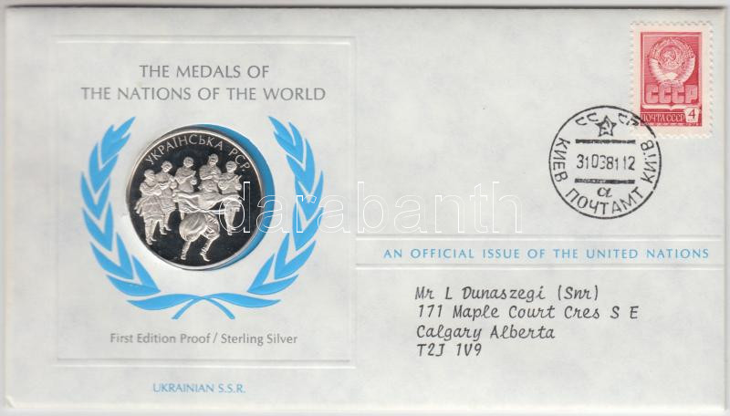 United Nations 1981. "The Medals of the Nations of the World - Ukrainian SSR" Ag medallion (15g/0.925/32mm) coin letter with first day of issue stamp and certificate C:PP