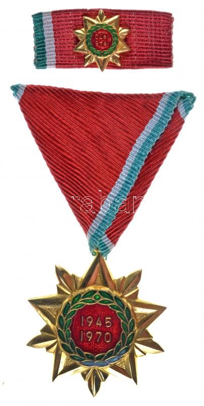 1970. "Felszabadulási Jubileumi Emlékérem" aranyozott Br csillag zománcozott medalionnal mellszalagon, szalagsávval és miniatűrrel dísztokban ++ ~1970. "Kisipari Szövetkezet Kiváló Dolgozója" kitüntetés miniatűrrel dísztokban T:1