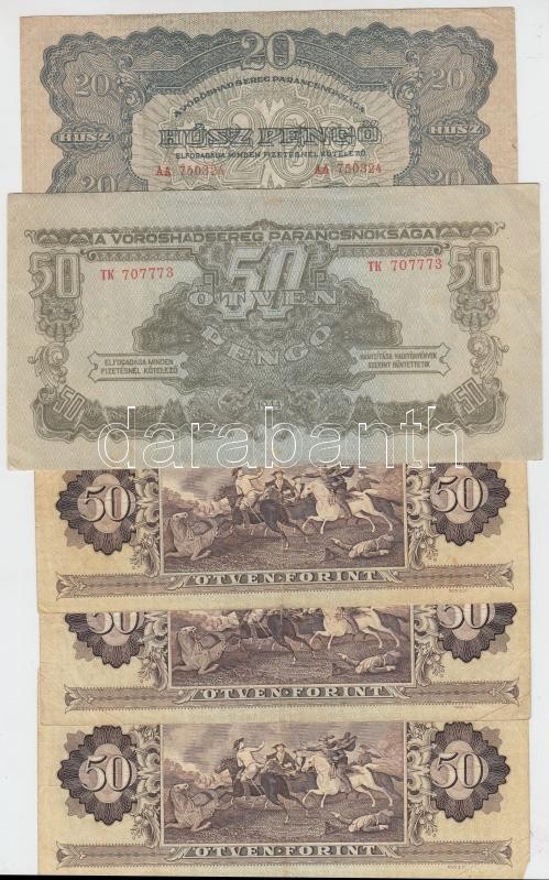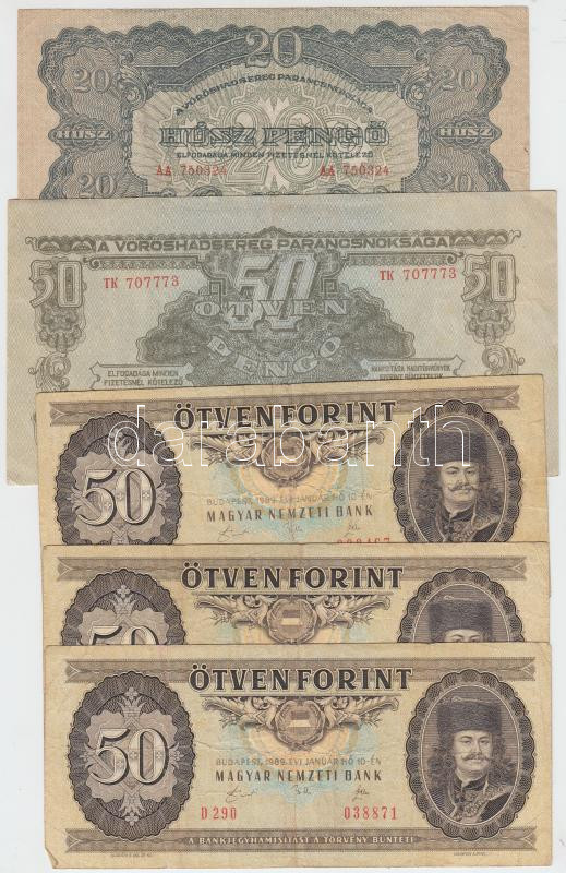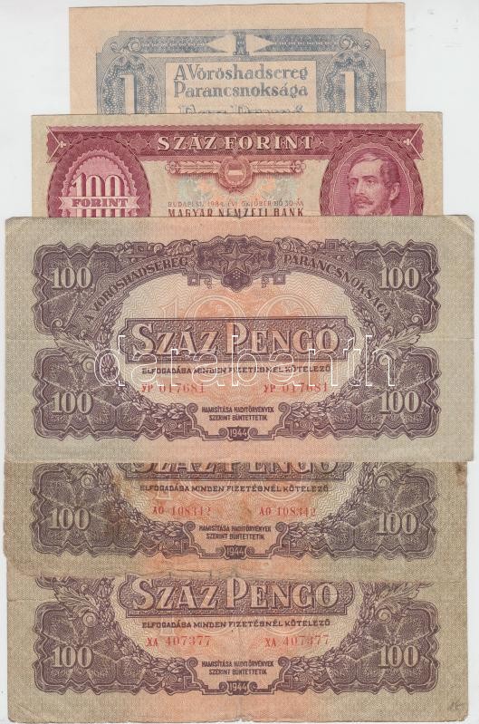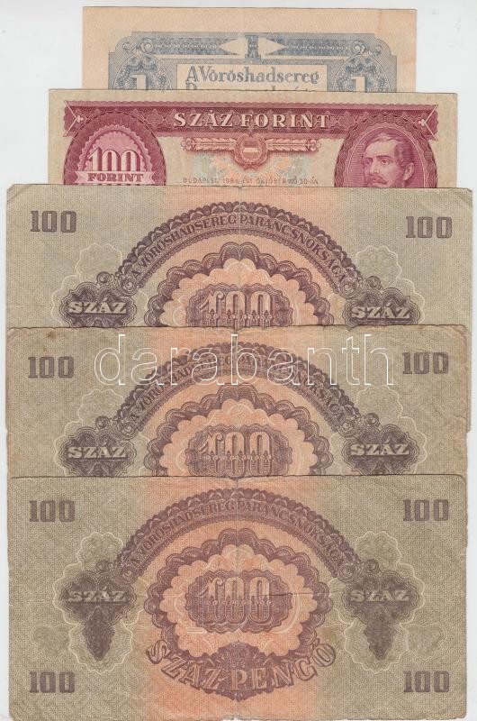 1944. 1P + 20P + 50P + 100P (3x) "A Vörös Hadsereg Parancsnoksága" + 1984. 100Ft 1989. 50Ft (3x) T:III,III-