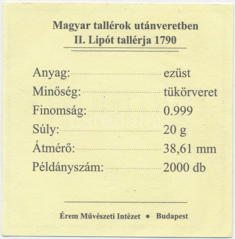 Magyar tallérok utánveretben "II. Lipót tallérja 1790" Ag emlékérem (2...