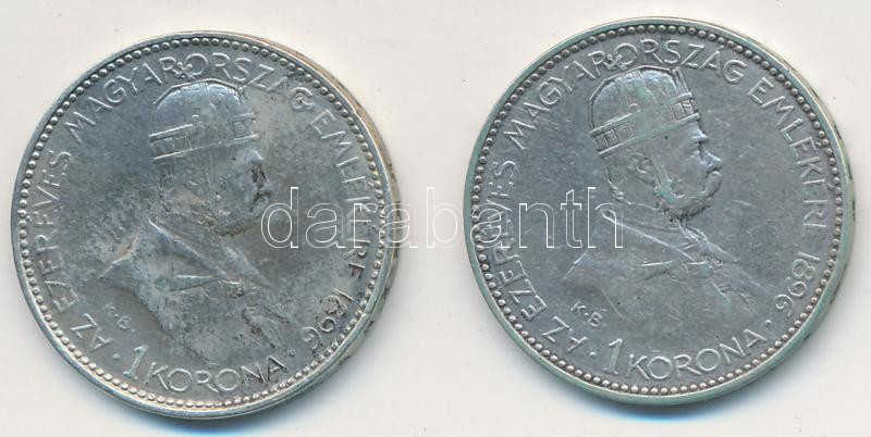 https://www.darabanth.com/en/207-Online-auction/207.0/Numismatics/Hungarian-metal-and-silver-coins~200010/1896KB-1K-Ag-Millenium-2x-T2--3Cbr3EUnger-III-1496-Huszar-2215-Adamo-K52~II839509