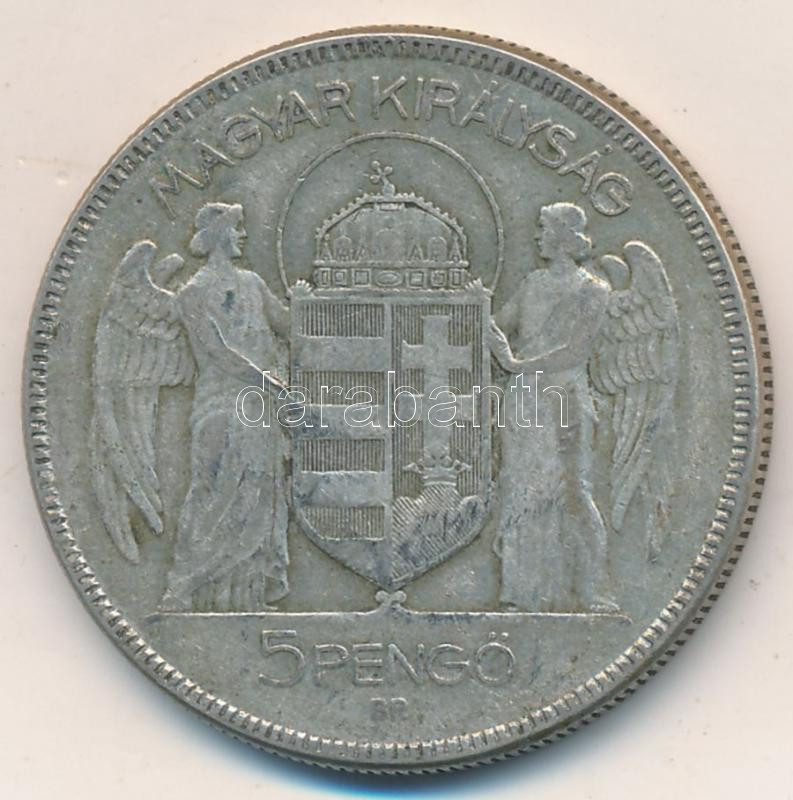 https://www.darabanth.com/en/207-Online-auction/207.0/Numismatics/Hungarian-metal-and-silver-coins~200010/1930-5P-Ag-Horthy-jobbra-T3-3Cbr3EAdamo-P8~II843235